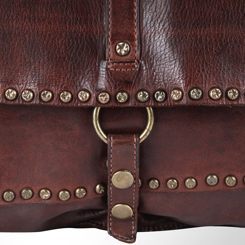 Enhanced with decorative rivets, adding a touch of rugged elegance.