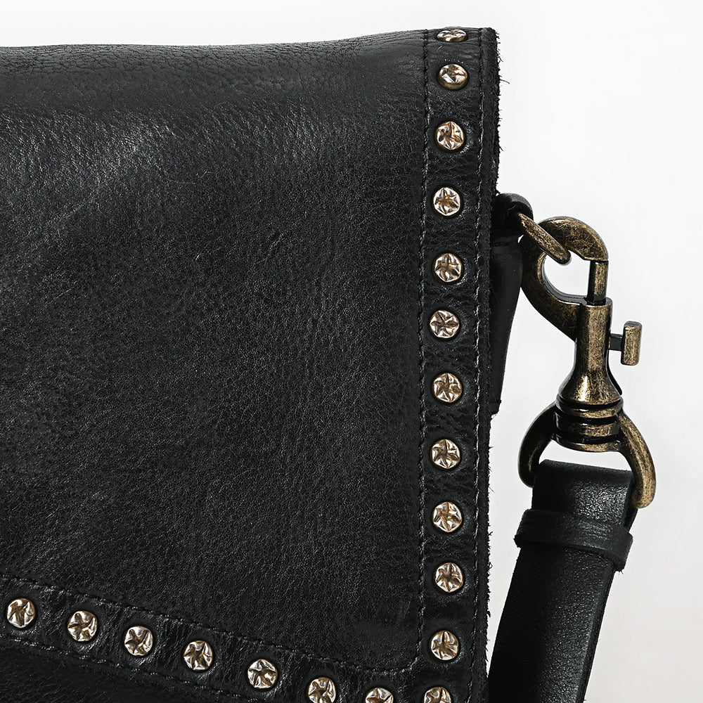 Enhanced with decorative rivets, adding a touch of rugged elegance.