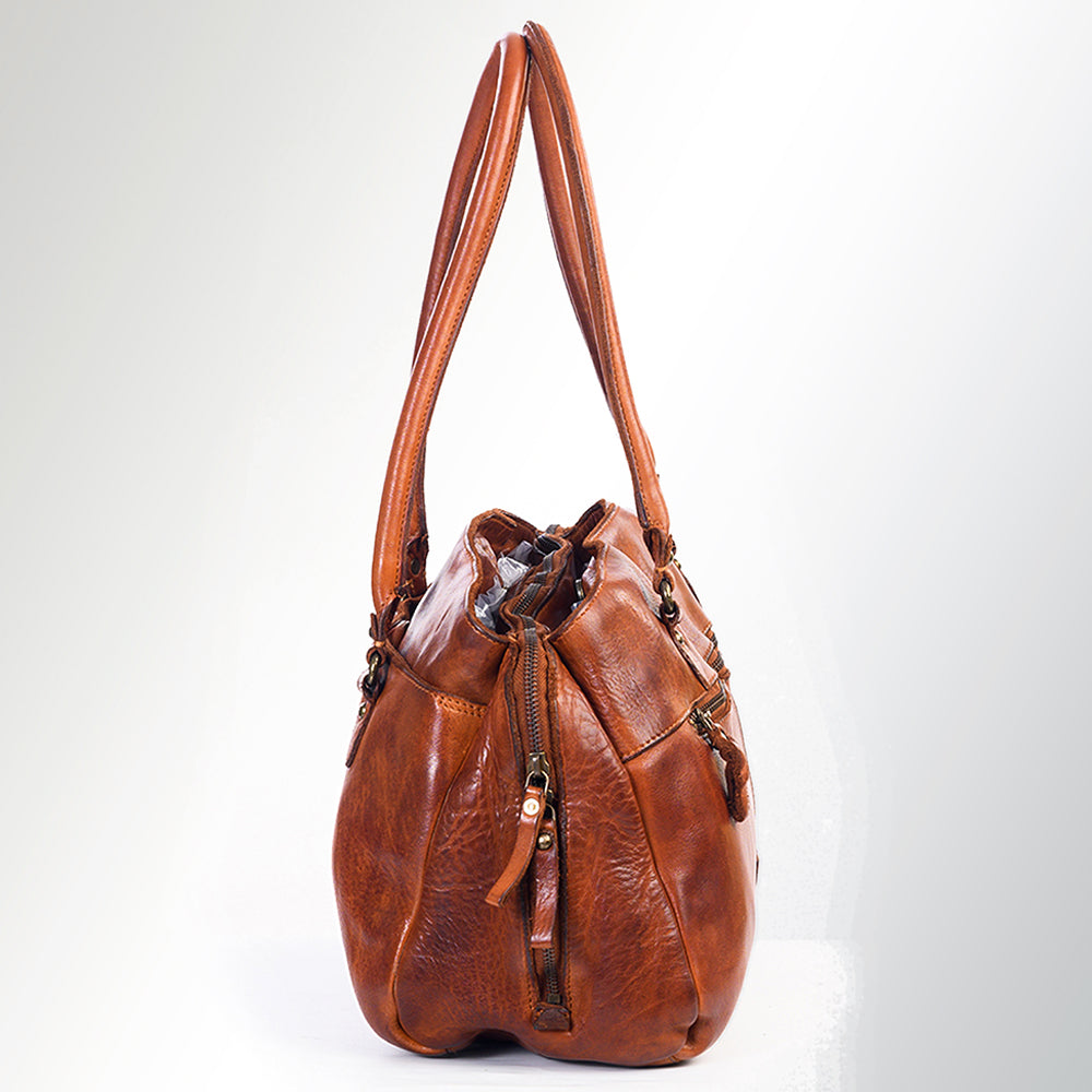 Premium Authentic Full Grain Leather. Luxuriously soft and pliable, this leather ages gracefully with wear, showcasing its enduring beauty.